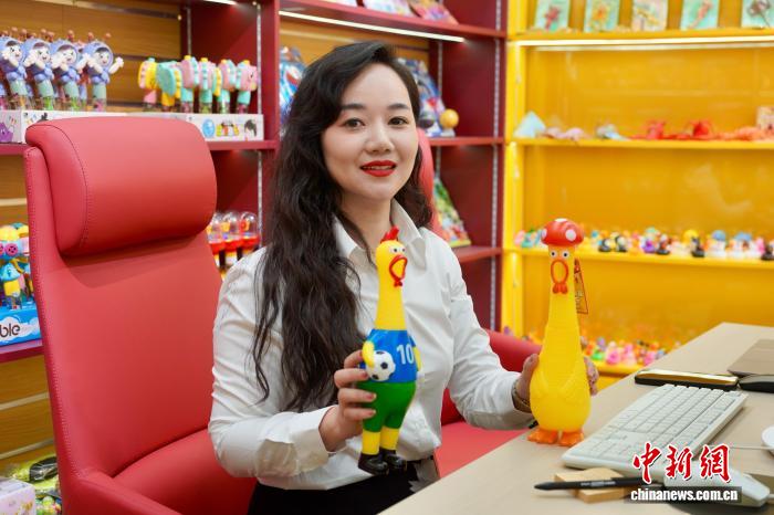 10月14日,周玲玲监事义乌港澳总商会的一位玩具行业从业者向记者展示了店内热销的产品。董艺欣图片